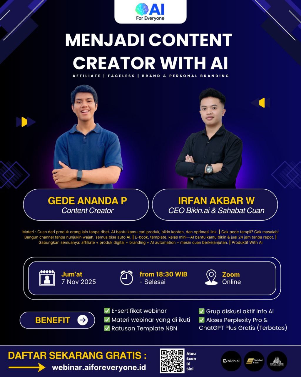 Belajar cara jadi content creator yang bisa cuan tanpa tampil muka, cukup pakai strategi & automation dari AI.